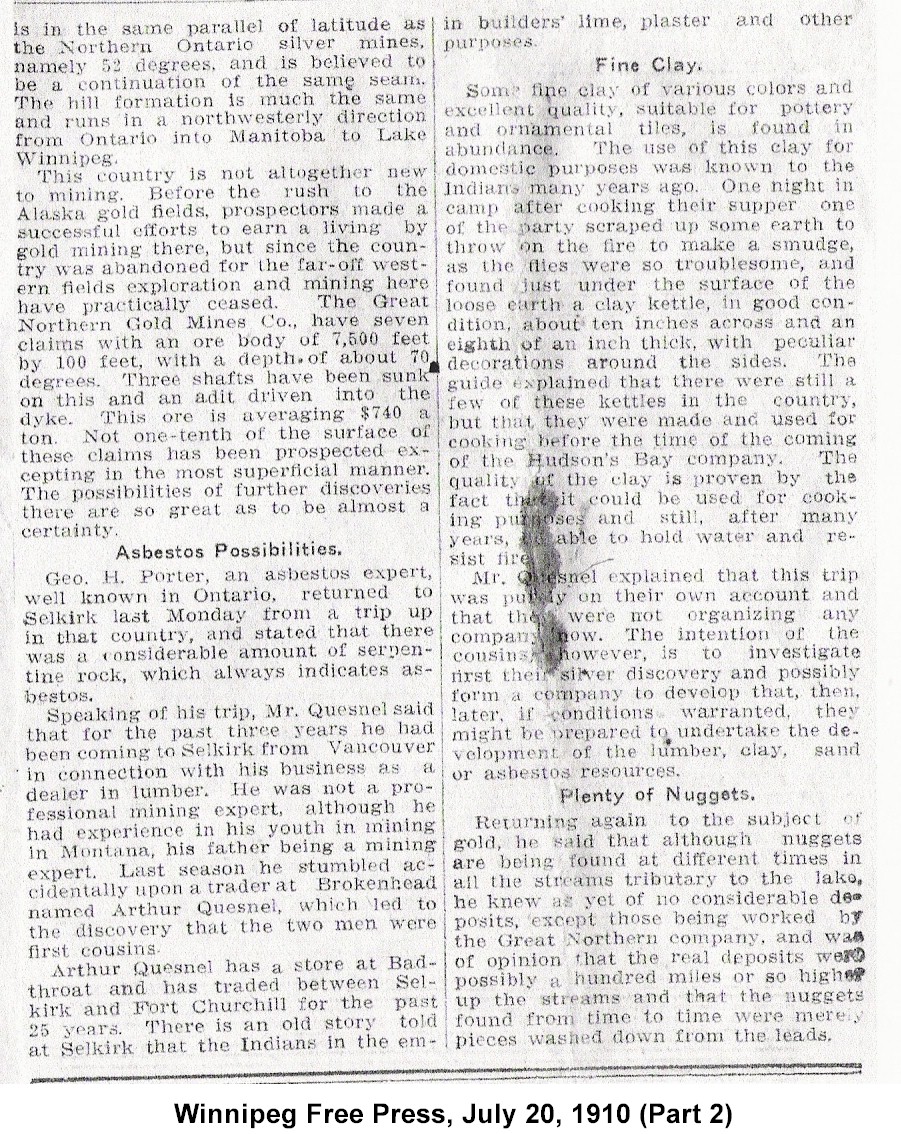 Articles Below: 1. A New Eldorado Near Winnipeg; 2. Quesnel Family